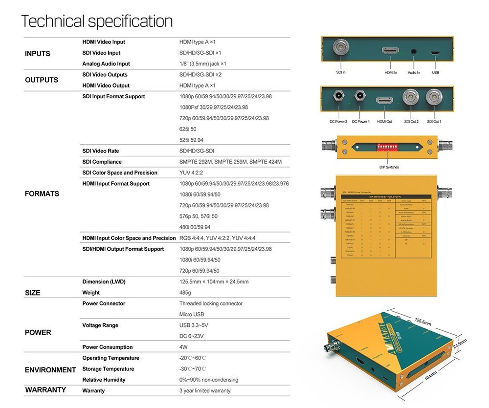 - Input: HDMI×1 or SDI×1, analog audio×1