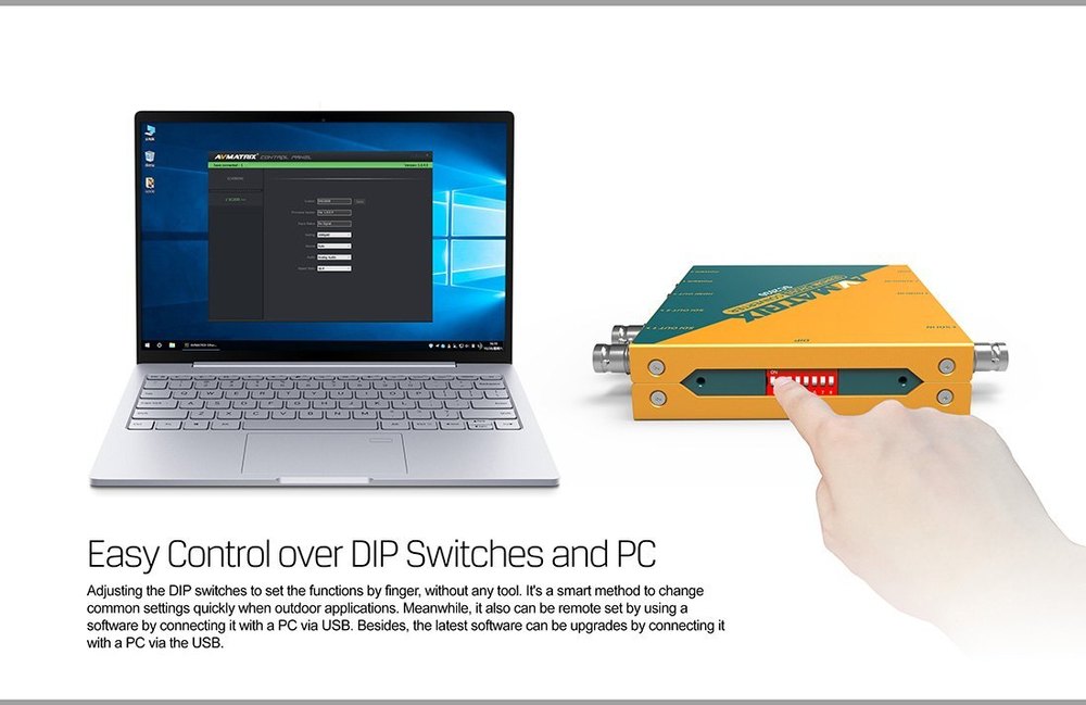 - Control easily via the DIP switches