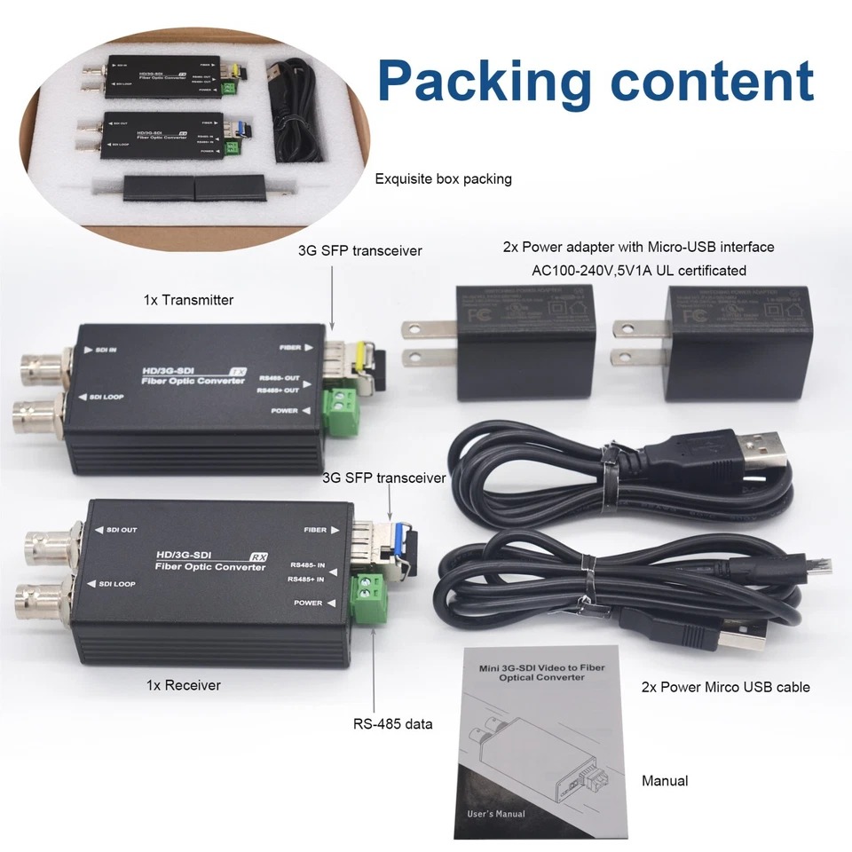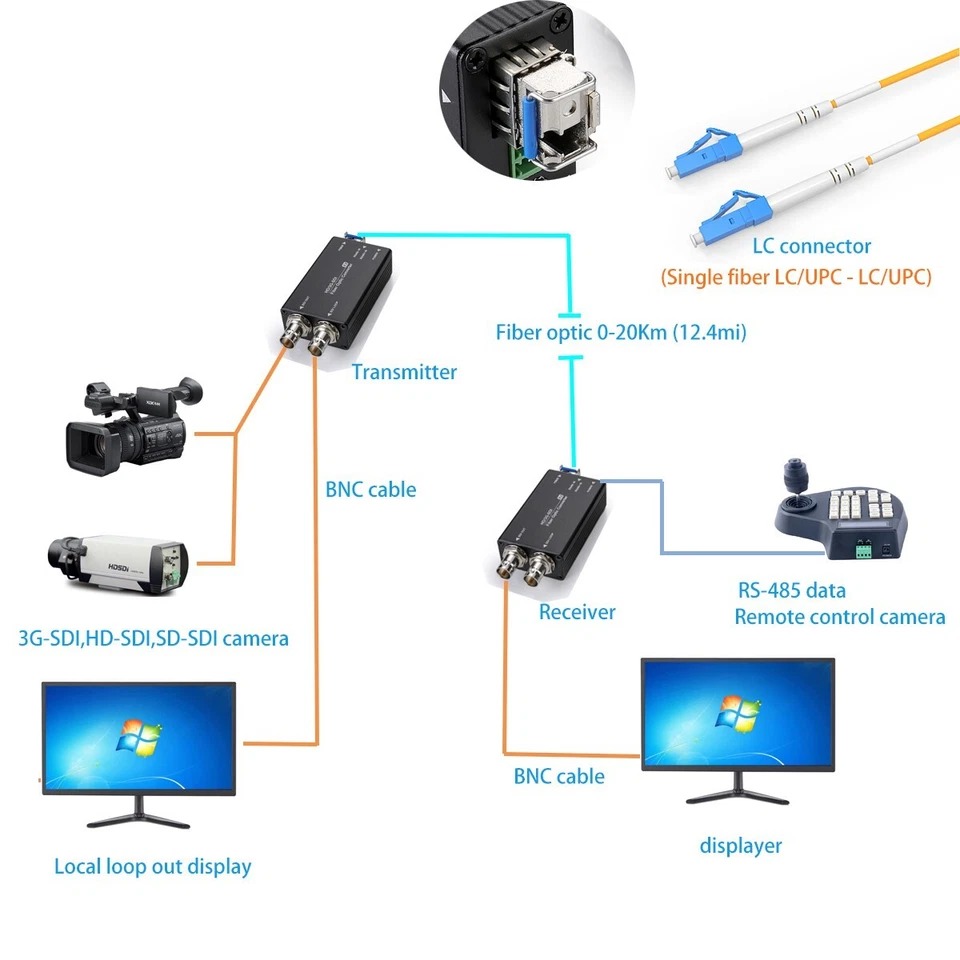 Description: 1 channel 3G-SDI video with loop out,1-channel reverse RS485 data mini type